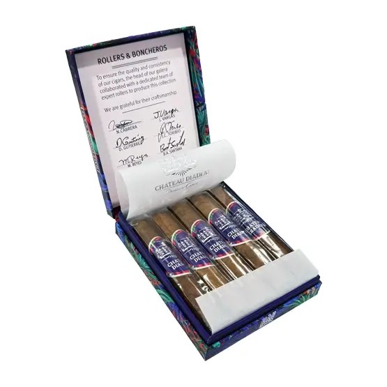 The cigar’s construction is impeccable, ensuring an even burn and a smooth, easy draw. Its compact size makes it a perfect choice for those seeking a quick yet fulfilling smoke, providing a premium experience in less time. Whether enjoyed during a short break or as a pre-dinner treat, the Chateau Diadem Conviction Half Corona is a delightful option for aficionados looking for a robust and flavorful cigar in a smaller package. Its complex flavors and smooth finish make it a standout choice for anyone seeking quality and satisfaction.