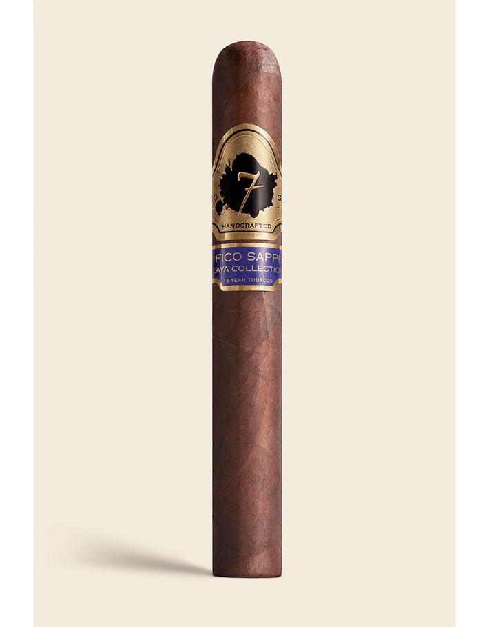 The El Septimo Zaya Collection Mirifico Sapphire is a meticulously crafted 6.75" x 58 cigar, aged for 15 years to deliver a refined and complex smoking experience. This medium-bodied cigar features a dark, oily wrapper that exudes a rich aroma. Upon lighting, you'll be greeted with generous, thick smoke that envelops the palate with sweet notes of marzipan and vanilla.