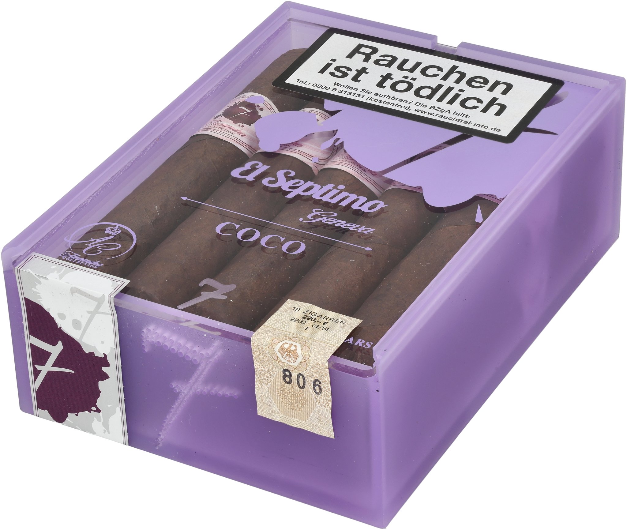 • The El Septimo Alexandra Coco Robusto cigar packs a mellow-mild strength in a smaller gauged cigar. Floral high-notes linger while the creaminess of the cedar notes remain the star of the show. A sweetness that resembles powdered sugar makes its presence known as you start the second third of the cigar, radiating notes of spiced graham cracker and cocoa, which quickly rival the cedar.
