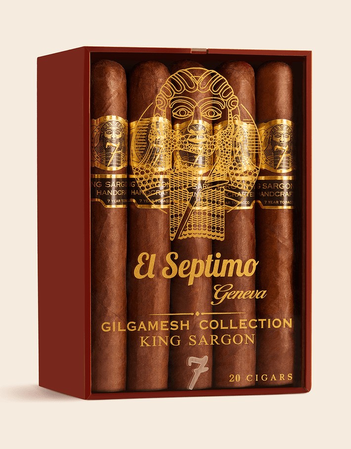 The El Septimo Gilgamesh Collection King Sargon cigar is a full-bodied blend and the latest addition to The Gilgamesh Collection. Blended with three fillers, the King Sargon offers a complex smoke from the foot to the head of the cigar, shocking the taste buds with a mixture of black and white pepper. Intense notes of chili flakes linger on the retro, activating all your senses while clearing all sinuses. An even ash builds, despite very little rotating, leaving a pleasant after-taste on the tongue and you craving for more. The Gilgamesh Collection is El Septimo’s latest addition, and offers the first 50 gauge cigars part of the brand. Symbolizing one of the oldest stories written into existence based on the historical records of Assyrian King Gilgamesh, this collection provides a unique tasting experience while focusing on the strength, flavor, aroma, and combustion of the cigar. Offering both medium bodied and full bodied cigars, these cigars’ burns last for a long period of time, while possessing a milder light-up than the traditional El Septimo Cigar, resulting in a gradual pace with the perfect balance between thickness and length.